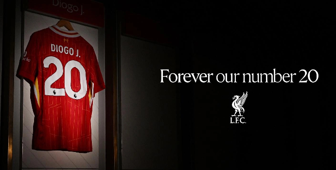 Liverpool anunció este viernes que siempre retirará la camisa N.20 en homenaje a Diogo Jota portugués, quien murió en un