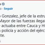 También el Ministro de Defensa, Pedro Sánchez, dijo y confundió que «neutralizaríamos al criminal conocido como el apodo de» Libardo González «, el líder del bloque criminal central» Isaias Pardo «de la figura de» mordida iván «.