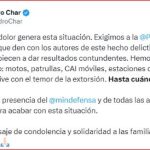 Añadió «Proporcionamos todo lo que preguntamos: motocicletas, patrullas, CAI móviles, estaciones de policía, pero la gente vive con miedo a la extorsión. ¿Hasta cuándo? «