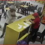 En las cámaras de seguridad del restaurante, el momento en que el hombre disparó a una mujer, y ahora este material está en posesión de las autoridades.
