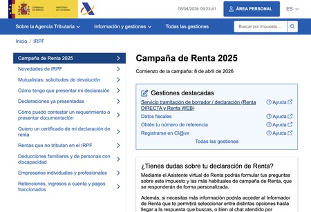 vamos a decirte Así accedes a tu borrador de Renta 2025esta es la declaración que deberás presentar en 2026 para dar cuenta del último ejercicio. El calendario del Impuesto sobre la Renta ha llegado a su día crucial y desde hoy, 8 de abril de 2026, ya puedes acceder a tu borrador y utilizarlo para presentar tu declaración de la renta.