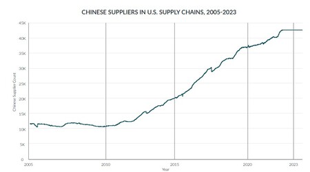 • El número de proveedores chinos en las cadenas de suministro de defensa se cuadruplicó entre 2005 y 2020.