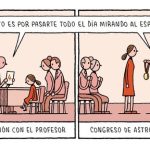 Finalmente, ponemos sobre la mesa un tema aparentemente contradictorio: ¿pueden los cómics y el humor ser herramientas esenciales para el aprendizaje científico? Y es muy claro: «Sí, creo que sí. Siempre me alegro cuando organizo un evento y, además de hombres con barba, a veces vienen sus hijos, o me encuentro con niños de diez o doce años que disfrutan con mis dibujos. Creo que hay algo en los dibujos sencillos y en la brevedad de los cómics que atrae a los jóvenes».