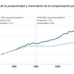 La separación entre productividad y salarios. Un buen ejemplo de este fenómeno es vemos en los datos des Instituto de Política Económica Actualizado a enero de 2026, la productividad estadounidense aumentó un 90,2% entre el cuarto trimestre de 1979 y el tercer trimestre de 2025, mientras que los salarios por hora aumentaron sólo un 33,0% durante ese período. Esto significa que el productividad financiera ha aumentado 2,7 veces más rápido que los salarios, creando una brecha que beneficia a las empresas, los ejecutivos y los accionistas, pero no a los empleados de esas empresas.