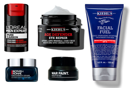 Algunos contenedores con productos cosméticos para hombres.