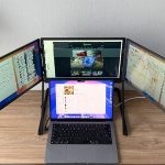 Cuando comencé las tres pantallas en casa por primera vez, pensé que la satisfacción inmediata de mucho espacio visual. El uso no es del todo intuitivo, pero tan pronto como lo entiende, es rápido: han pasado unos treinta segundos desde que lo pone sobre la mesa hasta que trabaje.