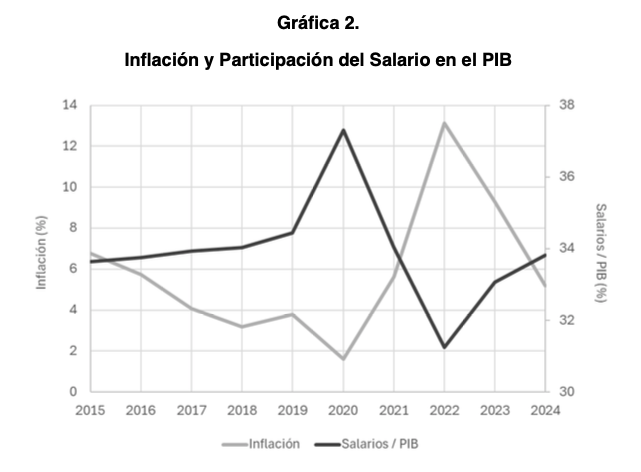 Participación de la inflación y los salarios en el PIB