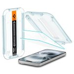 Spigen Glass.tr EZ Fit Protector para iPhone 16 Plus, iPhone 15 Plus, 2 unidades, instalación simple, alta definición, dureza 9h