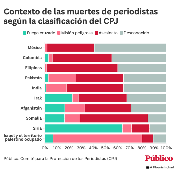 Según los periodistas sin fronteras (RSF), la mayoría de los periodistas que cubren los conflictos de guerra para grandes medios y agencias son Trabajadores trabajadores independientes. Esto deja a los trabajadores en tonterías aún mayores. De hecho, según CPJ, el 32% de los periodistas muertos en Gaza y Cisjordania ¿No fueron los trabajadores de la empresa cooperar con, Mientras que el otro 68% trabaja para las agencias palestinas o árabes y los medios de comunicación.
