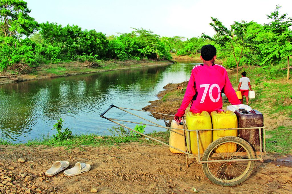 Imagen 2. La comunidad del corregimiento de Martinica, zona rural de Montería, recoge agua en el caño La Caimanera marzo 2026.