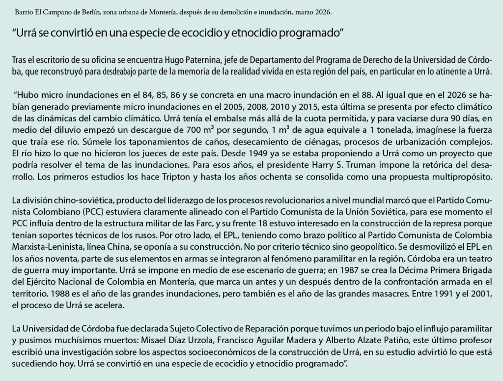 Imagen 1. Barrio El Campano de Berlín, zona urbana de Montería, después de su demolición e inundación, marzo 2026.