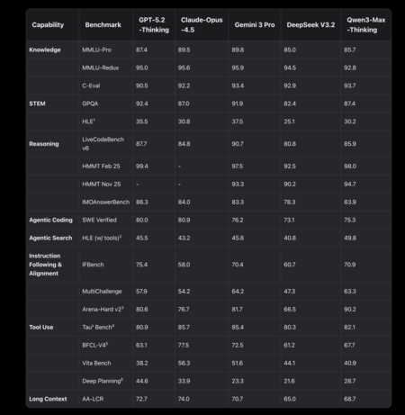 Para cumplir esta promesa, lo más útil es echar un vistazo a la tabla comparativa que tenemos, con 19 benchmarks y un conteo directo: Gemini 3 Pro lidera en el puesto 11, Qwen3-Max-Thinking logra ubicarse en el puesto 8. Este dato por sí solo es no decide “quién es mejor”pero ayuda a entender qué tipo de batalla está librando Alibaba contra Google. Aquí vale la pena tomar lo que medimos muy literalmente: cada punto de referencia se centra en una habilidad específica, desde el conocimiento general hasta la programación, el uso de herramientas, el seguimiento de instrucciones y un largo análisis contextual.