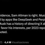 Sam Altman entra en escena. El CEO de Openais quería replicar a Muschus y respondió a su tweet Anuncio «Esta es una declaración sorprendente, teniendo en cuenta lo que escuché sobre lo que Elon hace para manipular X para su propio beneficio y compañía, y la desventaja de sus competidores y las personas a las que no les gusta». Analistas como Casey Newton analizaron el problema en el pasado y llegaron a la conclusión de que Musk realmente usó un sistema en el que Su noticia siempre tenía preferencia Sobre el resto de los usuarios.