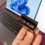 Pensé que ya estaba harto del concepto modular, pero no: Lenovo se ha reservado algunos conectores extraíbles. Están ubicados en cada extremo y se pueden quitar para configurar un puerto USB-C adicional, por ejemplo. O Un HDMI, los dos puertos que Lenovo tiene actualmente como muestra. Dado que es un concepto, la PC Lenovo ThinkBook Modular AI podría desarrollarse aún más con más accesorios tipo puerto.