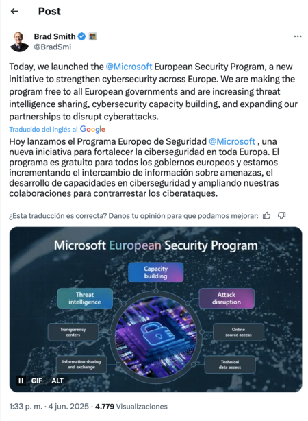Propuesta de Microsoft: un programa europeo de ciberseguridad que se basa de forma gratuita y en IA
